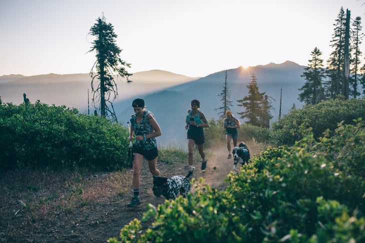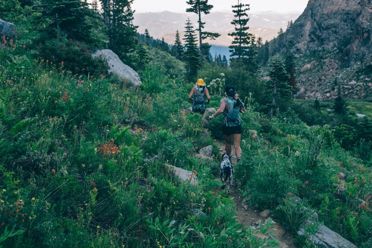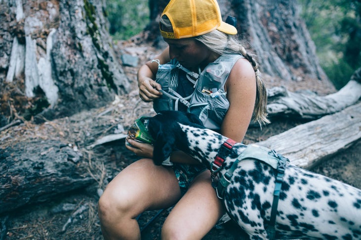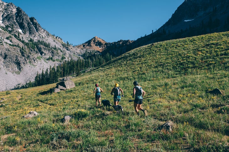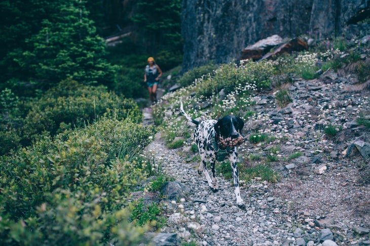 We packed a variety of salty and sweet treats– a couple thousand calories each for a long day of running, scrambling, and route finding– and threw in a couple of packs of beef jerky for the dogs, too.