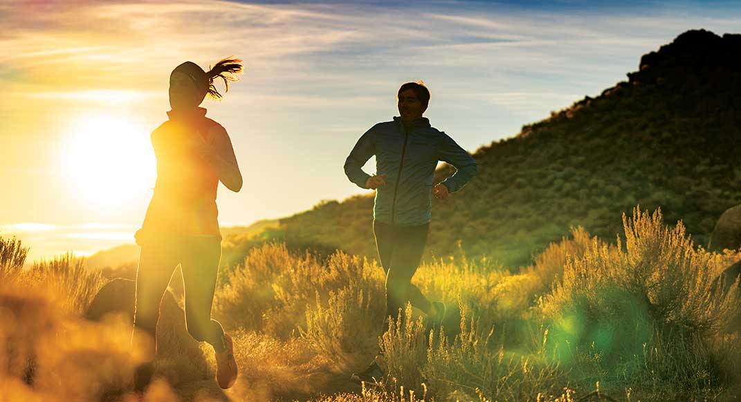Heather Mobley and Gavin Coombs on a morning jaunt outside of sunny Bishop, California. PHOTO BY ANDY KUMEDA