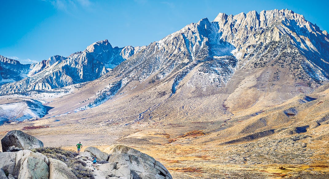“The Owens Valley could be coined the Chamonix Valley of the Eastern Sierra,” says trail runner and physical therapist Tim Tollefson, who lives just uphill of Bishop in Mammoth Lakes, at the eastern margin of the Sierra Nevada. “The valley floor sits at 4,000 feet altitude, and the corridor is lined by 14,000-foot peaks along its east and west sides. With such huge vertical relief and no shortage of trailheads, the valley provides a lifetime of exploration and challenges.”