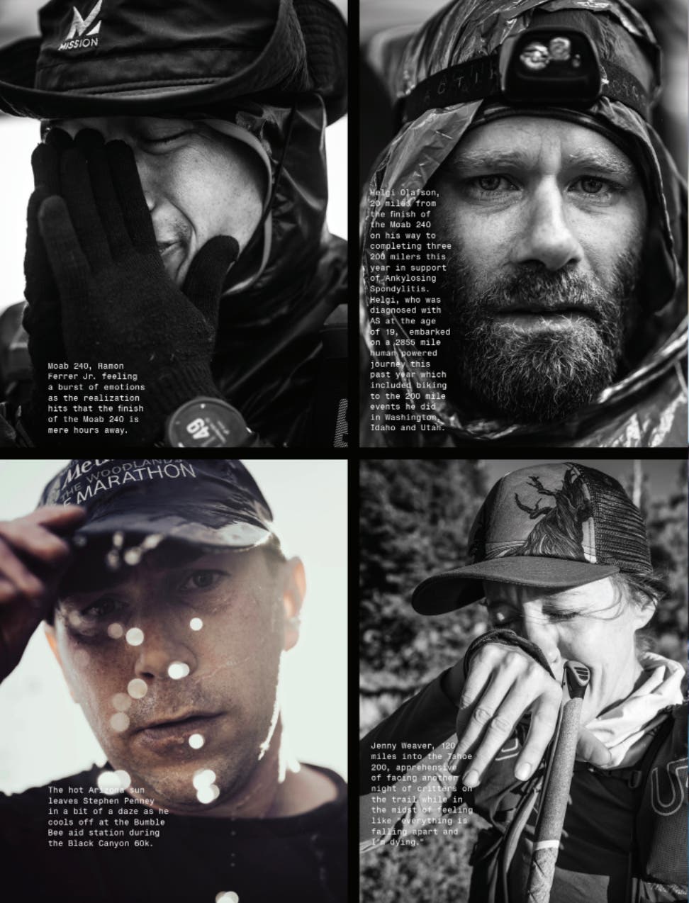 In the faces of these everyday runners, we can see ourselves. The range of emotions that come from committing to and executing big goals, watching how they morph from a vision in our mind imagined while lying in bed to a painful, euphoric, heartbreaking, fulfilling reality is common to every athlete. The thrill of overcoming our own and others’ doubts is a high unlike any other.
