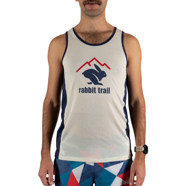 We like these trail singlets from Rabbit, which are lightweight and have a sporty silhouette and wide enough shoulders to wear with a vest. It’s also nice to have a top set-aside specifically for races that you don’t mind pinning bibs to, or getting very dirty and (potentially) blood-stained.