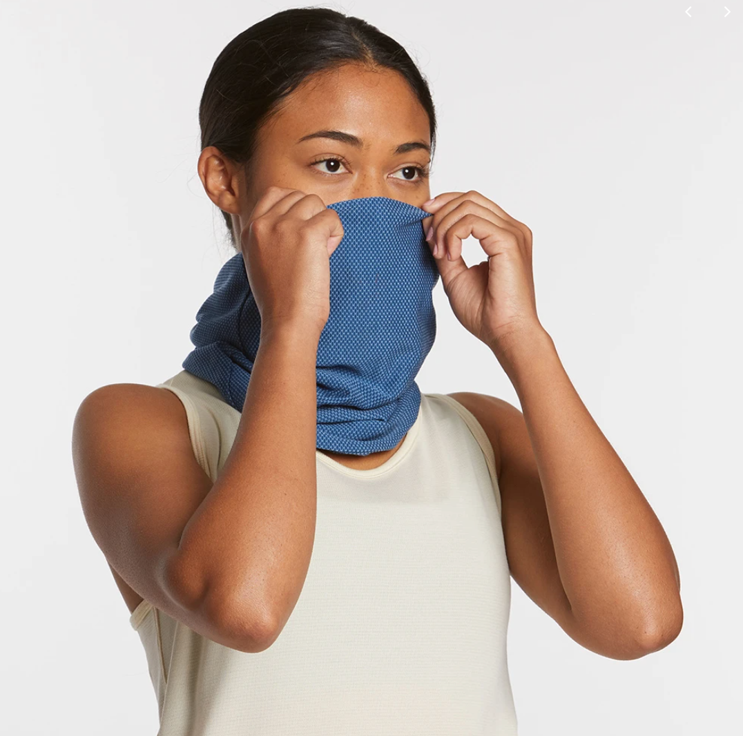 Oiselle’s flyout gaiter is incredibly light and sits around the neck for occasions when you can get a bit of social distance. The fabric is specifically designed for warmer weather so that you won’t break a sweat when masking up for your run. The dual-layer fabric provides extra protection without excess weight.