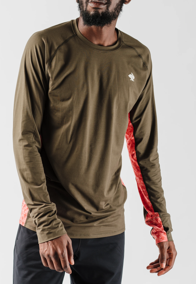 This light baselayer has breathable zones in strategic spots for high-intensity activity. Raglan sleeves make the piece feel flexible rather than tight, and thumb loops lock the sleeves in place when you’re really moving and need extra coverage. This piece is great under a shell or jacket and is substantial enough to be worn on its own for those in-between temperature days.