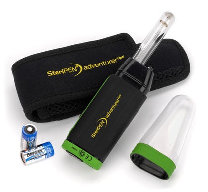 $90, 3.6 ounces (including two batteries), www.steripen.com