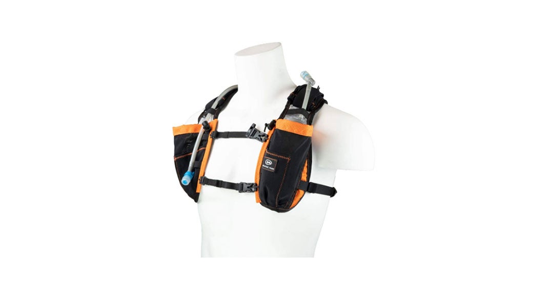 Available on the market as of February 2019, the Gear Vest Pro is a blend of the Orange Mud Endurance Pack and Gear Pack. A divergence from the signature “water bottle” holster style of pack, the Gear Vest can still hold traditional water bottles but cinches make the pockets compatible for soft flasks as well. All told, the vest can hold up to 75 ounces of water.