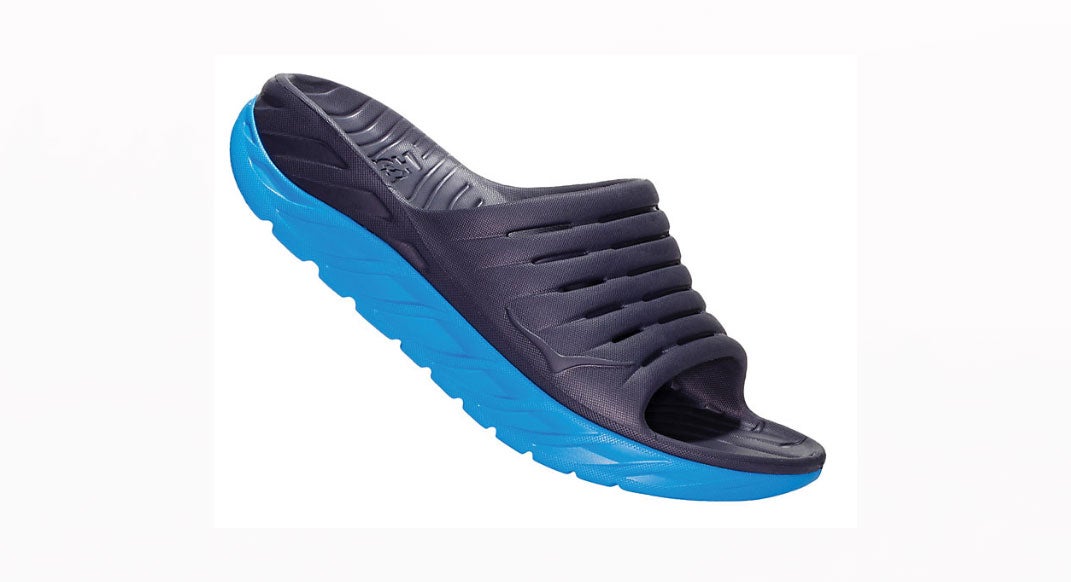 Enter the HOKA Ora Recovery Slide 2. A cushy UVA top layer immediately soothes the feet, while a rockered and stiffer midsole/outsole—with the typical HOKA wide footprint—offers needed post-run support. The open-toe design lets your feet splay and breathe, and you proudly display your well-earned black toenails.