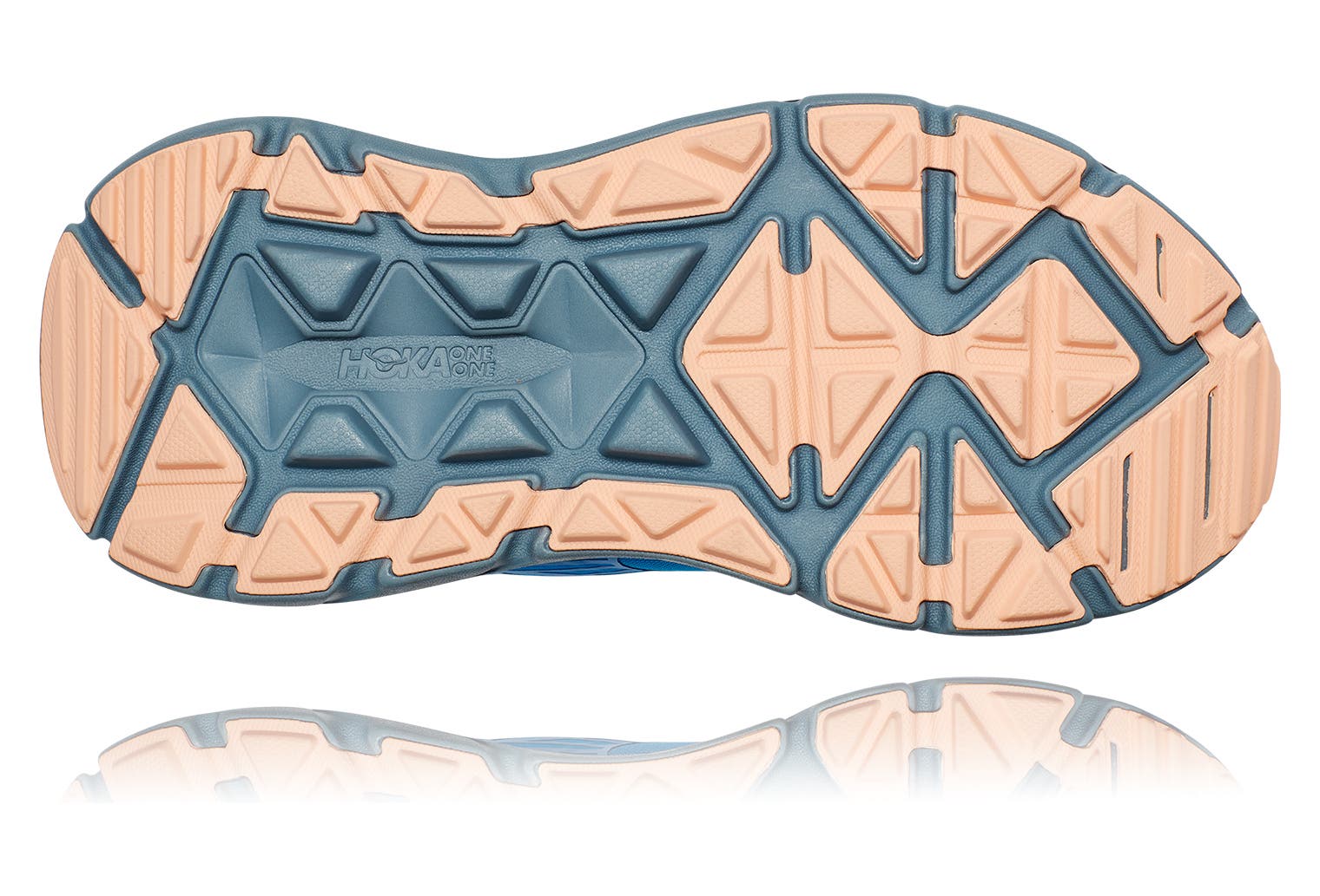 A flared base lends stability to the maximum cush, which cradles the foot for extra comfort and security despite the stack height. The shoe’s footprint is huge, which helps with stability and is surprisingly nimble. A little extra bottom helps you feel secure on tougher terrain and downhills. A slab of molded EVA offers all the cushion and protection you could want, with just a touch of rigidity for responsiveness. There’s just enough of a rocker for an extra-smooth ride and decent toe-off given the size of the shoe. An early-stage meta-rocker and 5mm drop give this shoe a sportier feel than looks might lead one to believe.