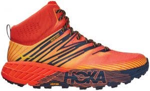 The low-cut Speedgoat 4 GTX trail runner has a fast-and-light vibe about it, serving up an energetic ride, reliable traction and long-haul comfort. The Speedgoat Mid 2 GTX has an ergonomically designed molded foam collar for optimal ankle support, ensuring a stable ride over any type of terrain.