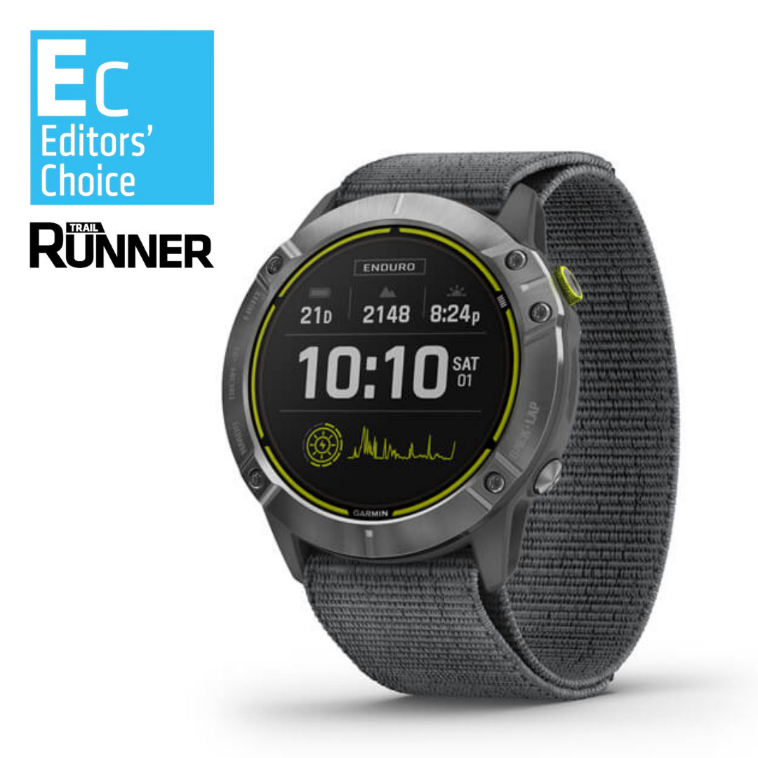 The standout feature in Garmin’s latest is battery life, and one of the big reasons is the “Power Glass” solar-charging watch face. The Enduro boasts 65 days of regular smartwatch use and 80 hours of GPS (assuming 3 hours/day in sunny conditions). The Enduro has ultra-running focused features like an updated ClimbPro that gives you data on upcoming climbs (assuming they’re over 1,500 feet in elevation, over 3% grade, and preloaded into the watch as a course). It also has the ultra run sport mode that allows you to calculate time stopped at aid stations, an updated VO2 max estimation system that does a better job of taking into account trails, and a cool PacePro feature that helps plot our a pacing strategy using speed, distance, elevation, and a few self-selected parameters like how much you want to push the hills or if you want to negative or positive split. The Enduro also has multisport-necessary features like open-water, pool swimming, advanced cycling, running, triathlon, swimrun, and custom multisport configuration sport setups.