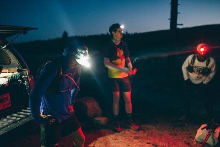 After dropping a car shuttle at the western end of Twin Lakes, we drove down 395 and up and over Tioga Pass and into Tuolumne Valley, hoping to start before sunrise. The shuttle is about an hour long. Our goal was to get a significant portion of the run done while temps were cool, saving energy for Burro and Mule Pass later in the day.
