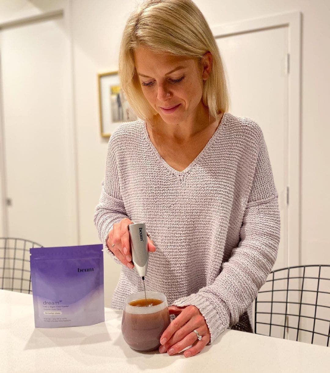 But Hall says she isn’t naturally a great sleeper, which is why she turned to Beam Dream. “When I moved to high altitude, that really disrupted my sleep, which derailed my recovery and in turn my performance,” she says. With CBD, which calms inflammation caused by training; the amino acid L-theanine, which helps her wind down; and magnesium, which relaxes her hard-working muscles, “it’s a great ritual at bedtime to cue my body that it’s time to sleep,” says Hall.
