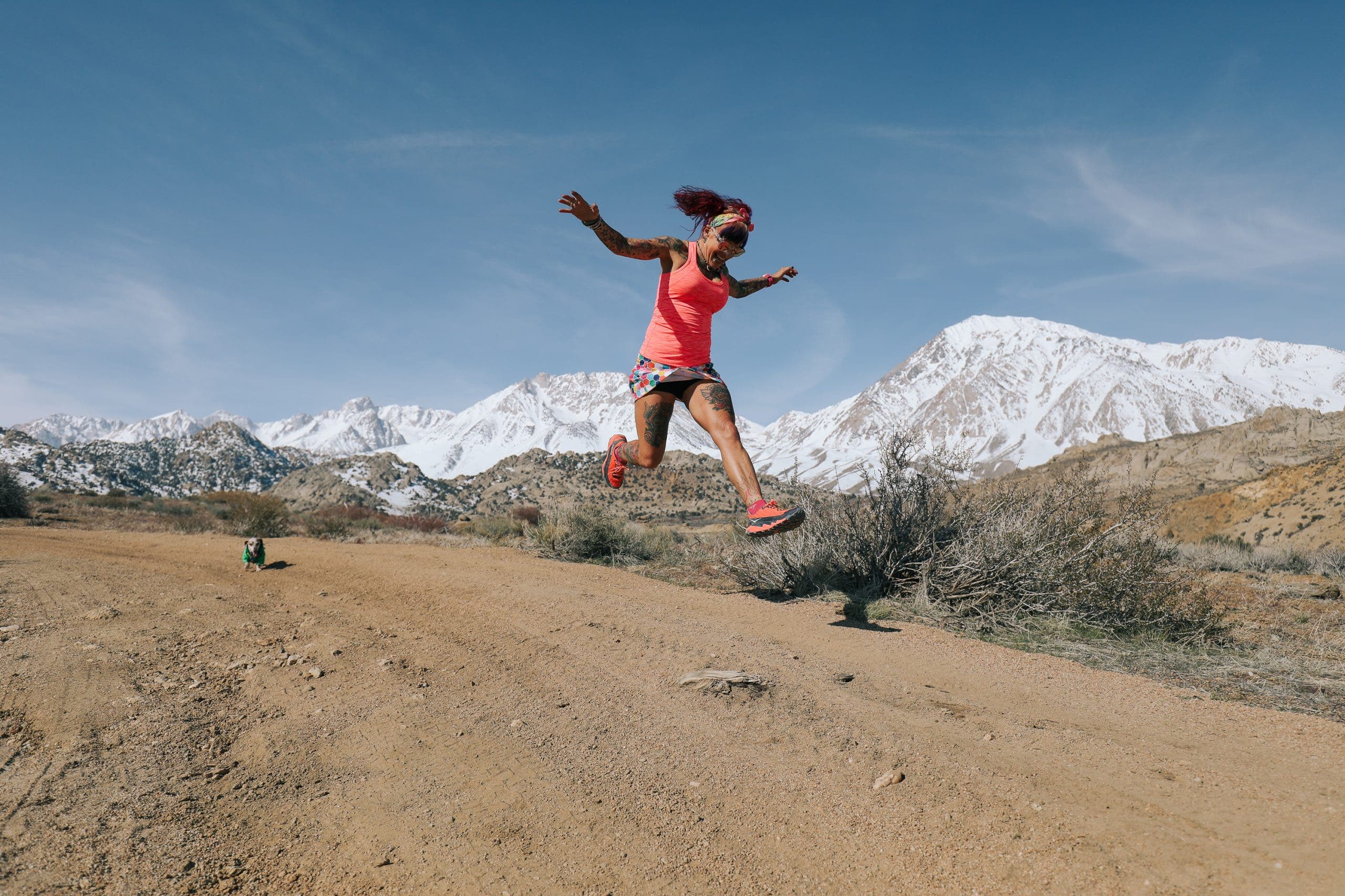 It would be hard to miss her fluorescent and usually matching athletic wear, bright-pink locks twisted into twin buns on the top of her head, tattoos and facial piercings a blur in the California sun as she whisks by you with a smile (and at least one dachshund running alongside).