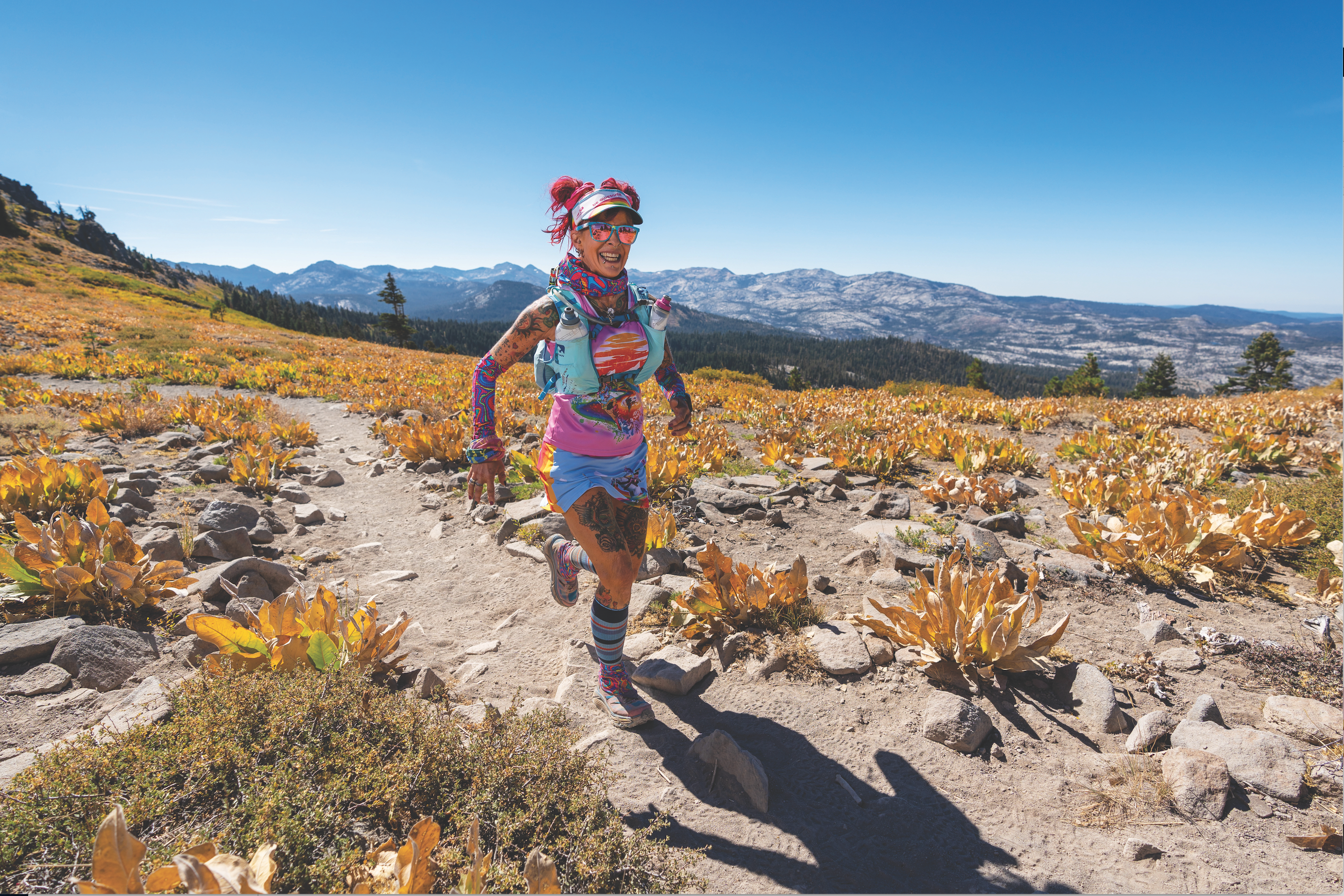 200-miler, one virtual 100 and an official 72-hour race (completing 186 miles). And this summer, she aims to set an FKT on a double of the Tahoe Rim Trail, for a total of 340 miles. If she runs Mount Whitney three more times (as she plans to do), she’ll have achieved 20 summits of the peak.