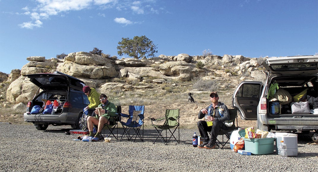 That Thursday, we arrived in Fruita: Hayden, a planner and type-triple-A data geek, his mind ever limber thanks to his hyper-controlled system of logistical calisthenics; Casey, a no-stretch, no-spreadsheet type of runner who agreed to the adventure despite being severely undertrained after a firefighting season spent chainsawing and truck-sitting; and Karin and Kate, our ever gracious wives and crew.