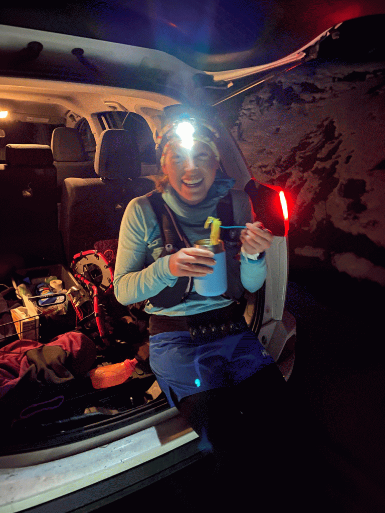Ten miles from town on her way back from Mt. Elbert, Annie was met by her roommate Marley Seifert, a friend who’s crewed her at most of her ultra races over the past two years. She brought her hot ramen soup, which hit the spot and gave her the boost she needed to finish strong.