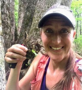 Here’s a sample of the directions for a treasure hidden on trails at Carvins Cove, a popular area with several intertwining trails just outside of the city.