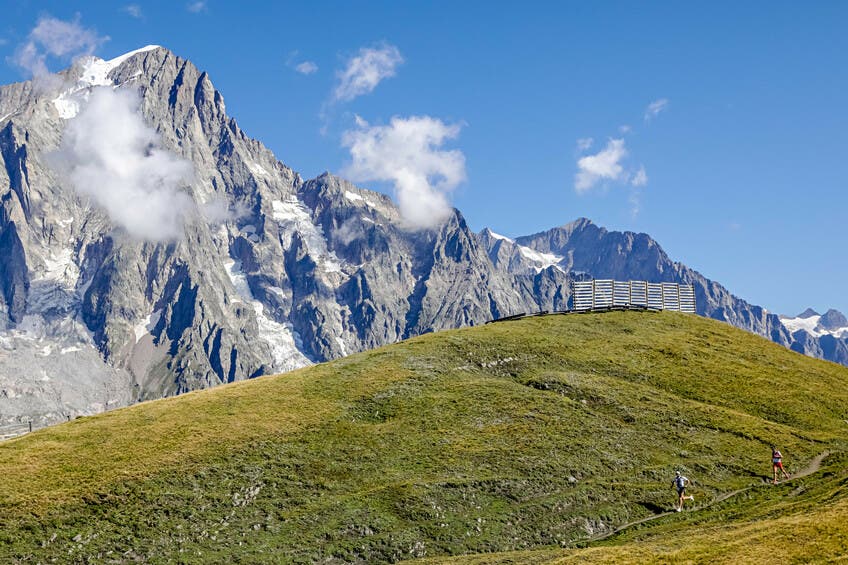 Good news! Chamonix is directly opposite you, just on the other side of the Monte Bianco Skyway Gondola you can spot across Val Ferret. Bad news! You’re not really quite halfway yet.