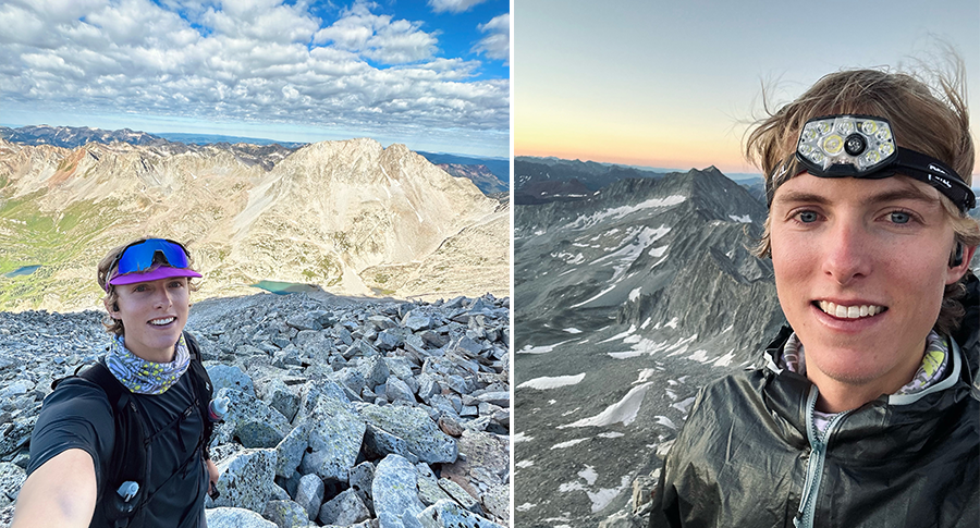 Both Hamilton and Hopkins took different lines than many of the previous finishers, cutting nearly 4.5 miles of distance off the route that Wirth took. The two athletes spent a lot of time scouting the route, allowing them to identify the quickest way between the peaks. Hamilton grew up in these mountains and now works as a guide with Aspen Expeditions, giving him ample opportunity to scope the terrain. Additionally, the Aspen native has a real penchant for maps. “A lot of people spend free time scrolling social media,” Sophie says. “Simi spends his free time scrolling Google Earth.” Although Hopkins climbed his first 14er just three summers ago, he is a quick study and dedicated an entire season to learning the intricacies of the route.