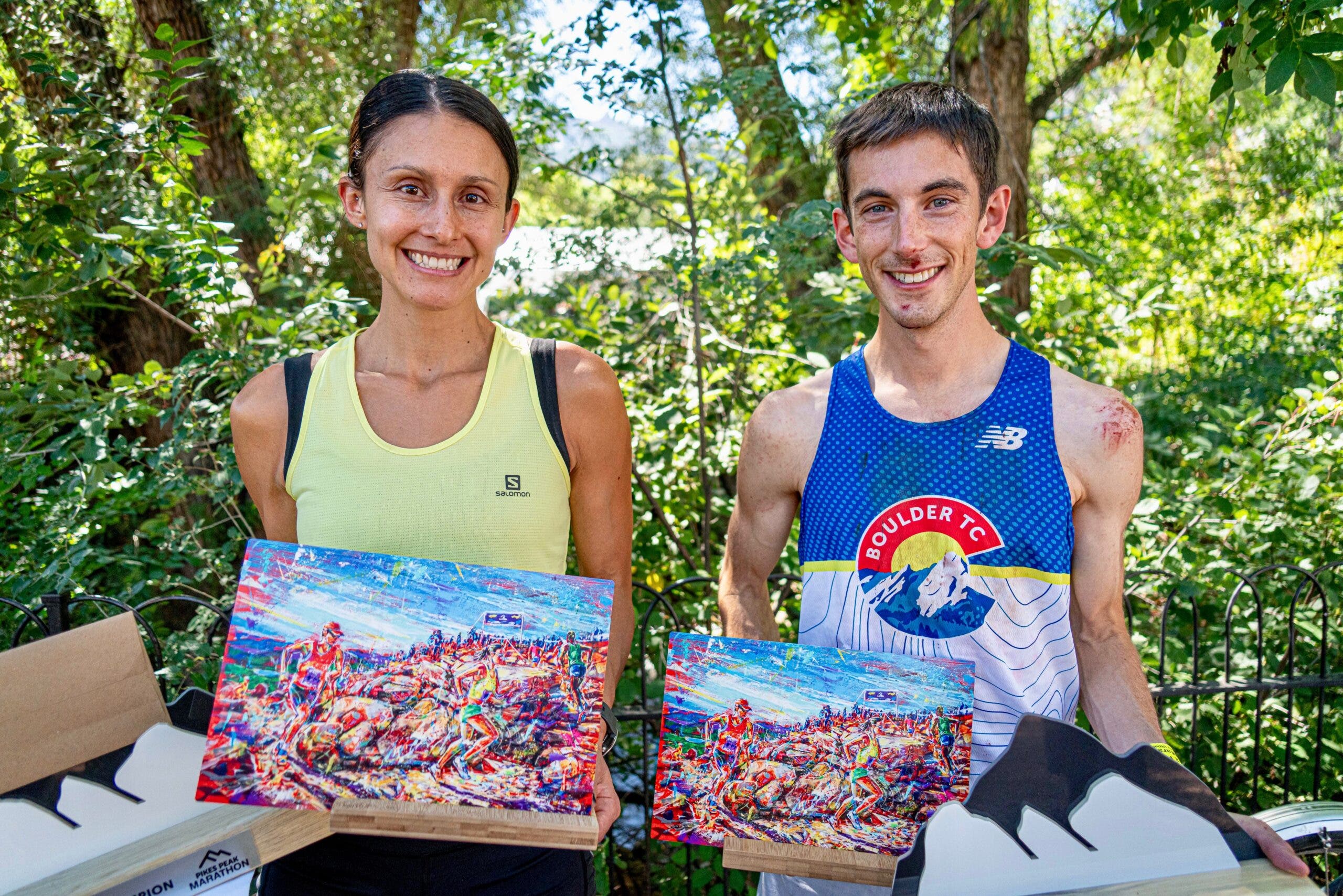 Much of the attention of last weekend’s racing action on Pikes Peak was focused on the 13.3-mile Pikes Peak Ascent because it featured a star-studded international field as part of the Salomon-sponsored Golden Trail World Series and featured a $18,000 prize purse, plus additional bonuses for course record times. Although no records were broken, Switzerland’s Remi Bonnet (2:07:02) and Dutch runner Nienke Frederiek Brinkman (2:27:26) turned in solid performances to win the uphill-only Ascent races.