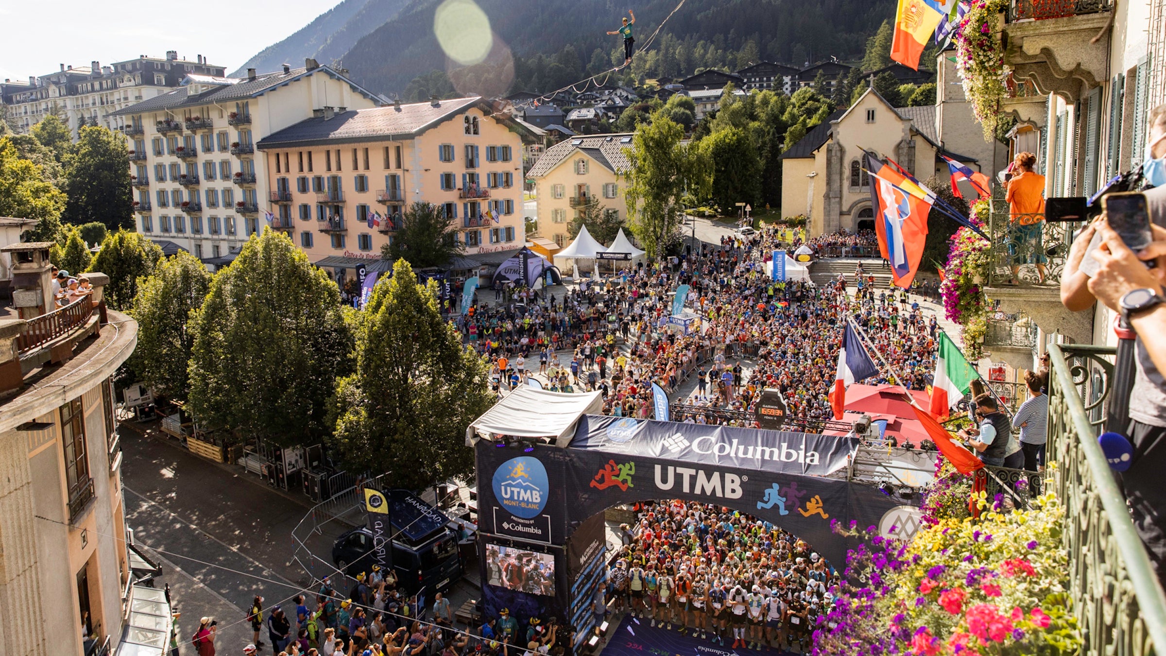 The CCC starts in two waves deep in the valley of Courmayeur, Italy. Runners begin the race on winding roads through the city. They then start the first of seven steep climbs on the course, traversing a few zigzags into a forest to begin a massive, 3,500-foot climb on singletrack trails to Tete de la Trionche (8,408 feet) at the 10K point.