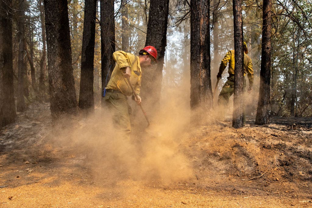 RAMSEY CROSSING, CA - SEPTEMBER 15: Firefighters work to contain The Mosquito Fire on September 15, 2022 in Ramsey Crossing, California. The Mosquito Fire officially became the state's biggest fire of the year and is still only 20 percent contained. (Photo by Eric Thayer/Getty Images)