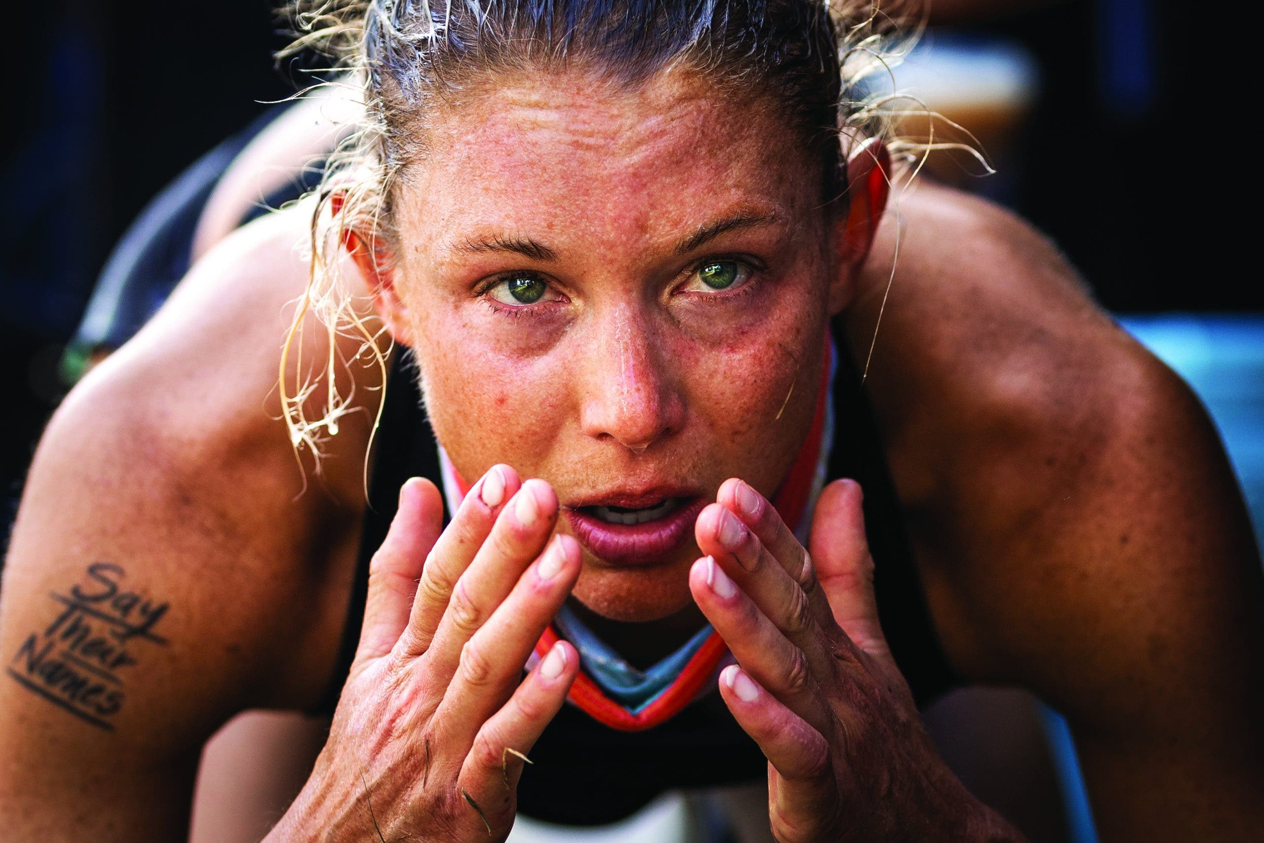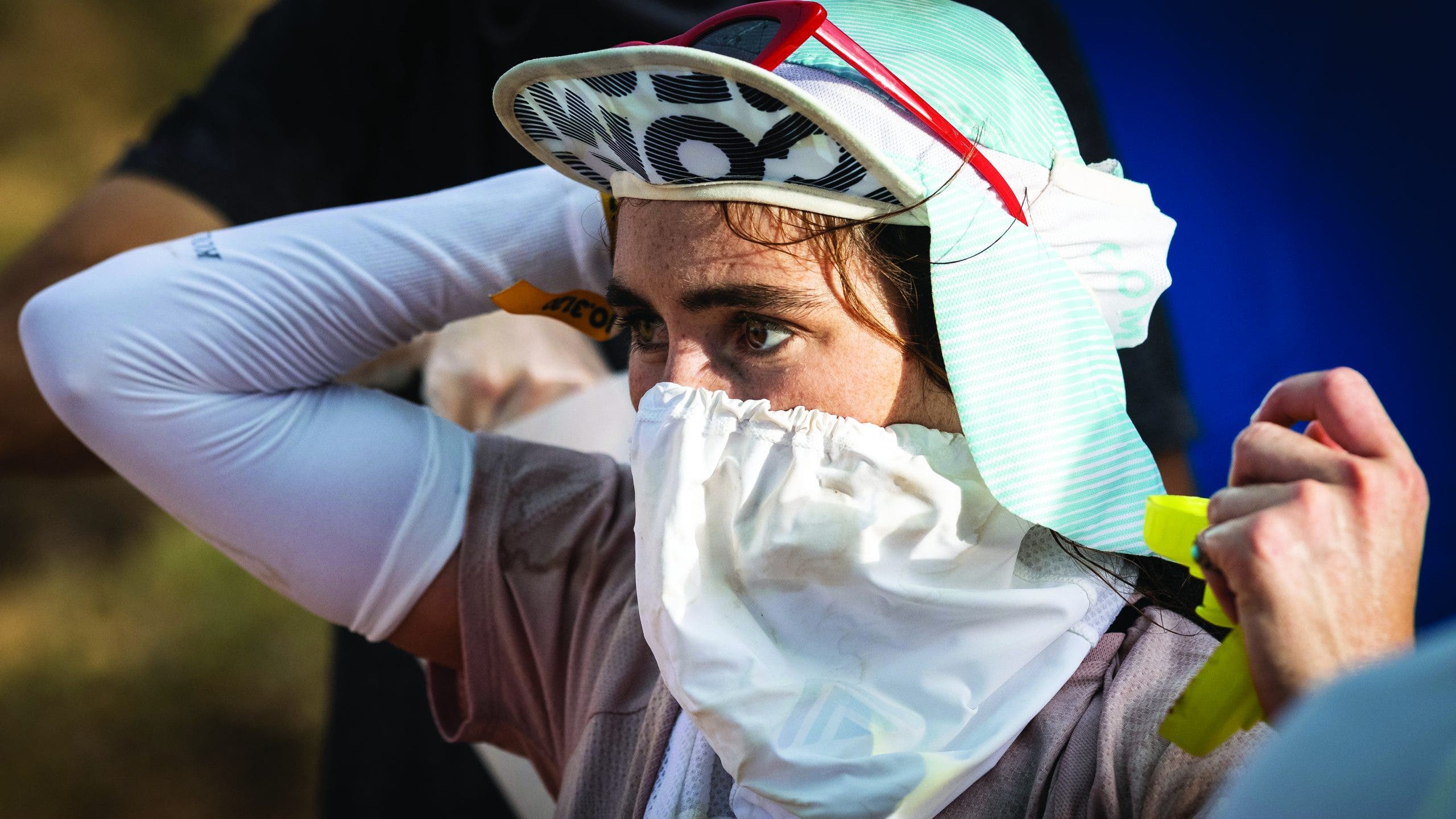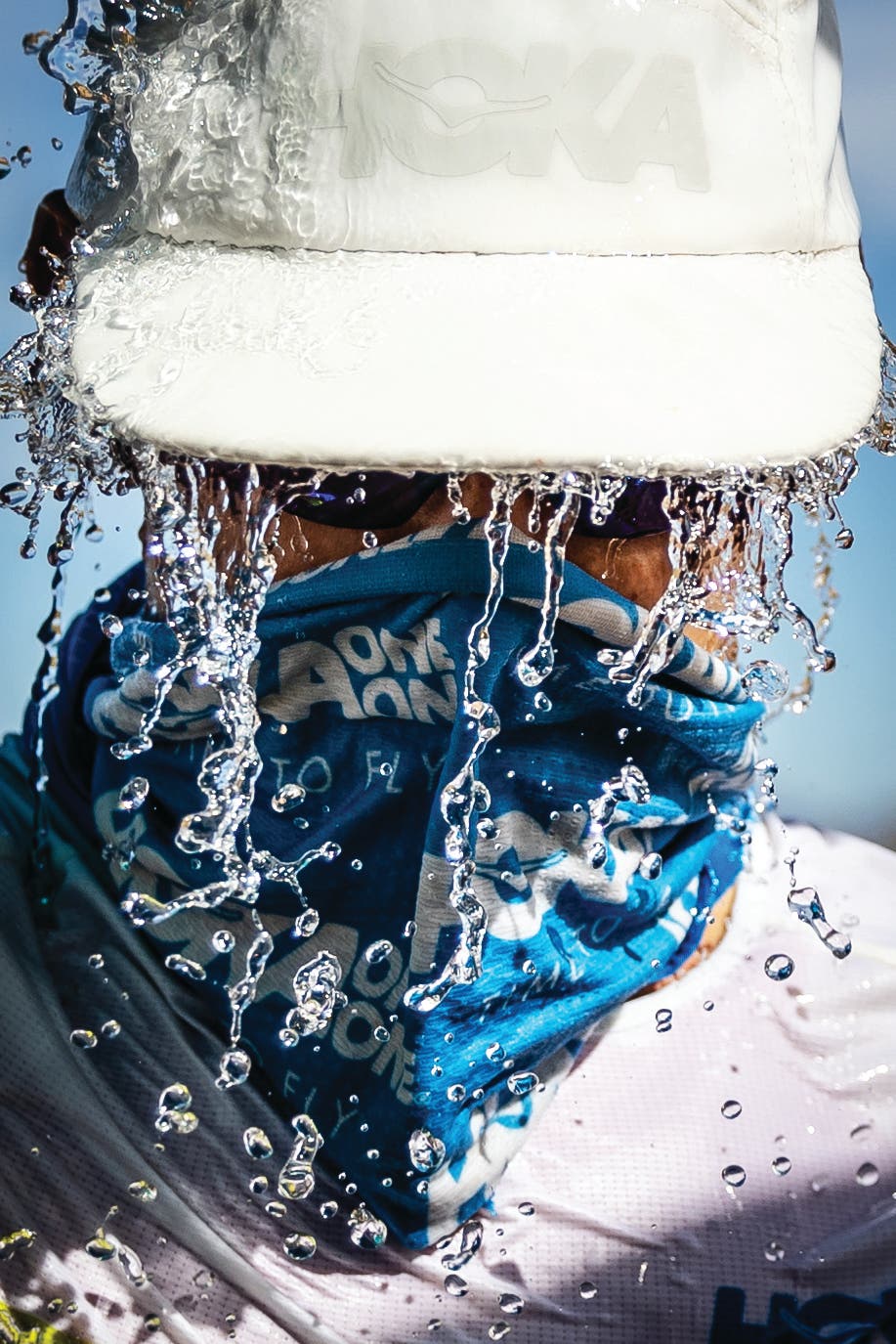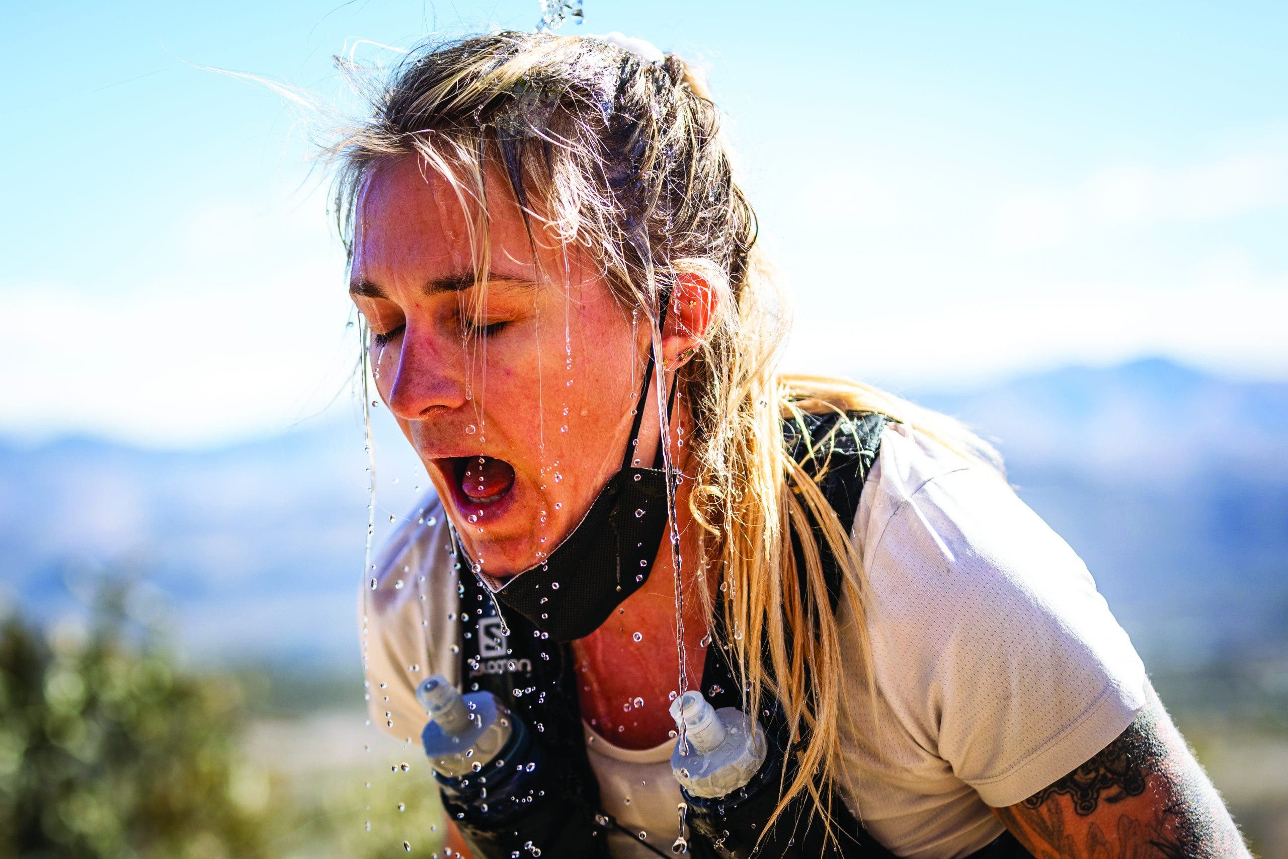 Tim Tollefson cools himself en route to a win at the Javelina Jundred.Tessa Chesser in hte heat of battle chasing the leaders at the Black Canyon 60k, Black Canyon National Recreation Trail, Arizona.A focused Kalie Demerjian in the hunt for the podium at Javelina.