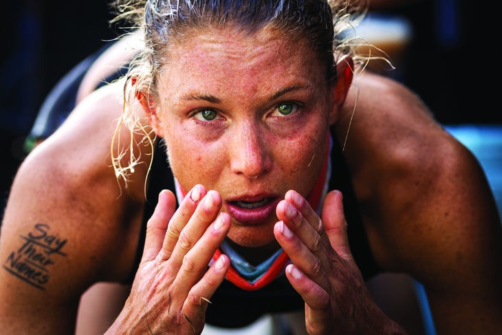 Tessa Chesser in hte heat of battle chasing the leaders at the Black Canyon 60k, Black Canyon National Recreation Trail, Arizona.A focused Kalie Demerjian in the hunt for the podium at Javelina.