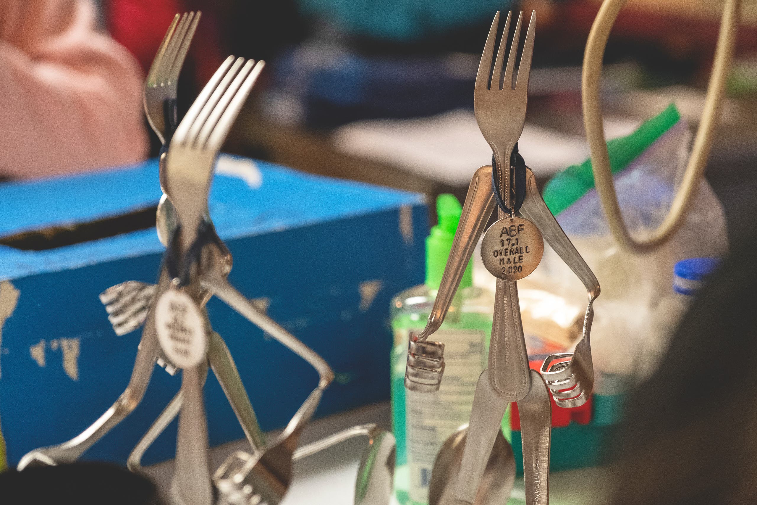 In addition to the homey feel of Grandma’s house, the past few year’s awards for first place finishers have included hand-harvested local honey, hand-soldered fork statuettes, and a charming cross-stitched winner’s plaque.