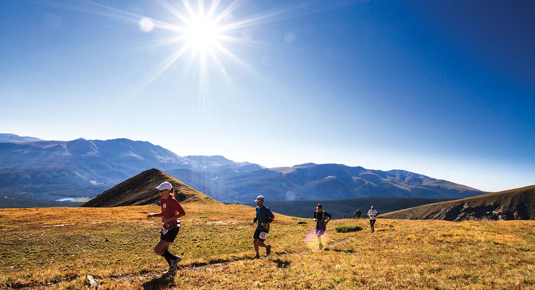 High above the treeline on the town’s ski hills, runners tackle rock-laden switchbacks and open, gravely singletrack. From here, one has unobstructed views of sparkling Lake Dillon, the craggy Tenmile Range and the spidery slopes of Copper Mountain ski resort.