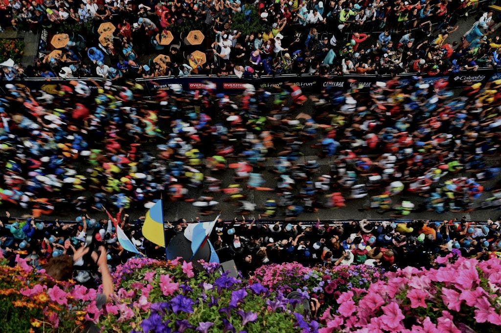 2300 runners wait for the start of the 170 km Mount Blanc Ultra Trail (UTMB) race around the Mont-Blanc crossing France, Italy and Swiss, on September 1, 2017 in Chamonix. - The 15 th Ultra-Trail du Mont-Blanc (UTMB) is a mountain ultramarathon with numerous passages in high altitude (>2500m) and in difficult weather conditions (night, wind, cold, rain or snow). It takes place once a year in the Alps, across France, Italy and Switzerland. (Photo by JEAN-PIERRE CLATOT / AFP) (Photo by JEAN-PIERRE CLATOT/AFP via Getty Images)