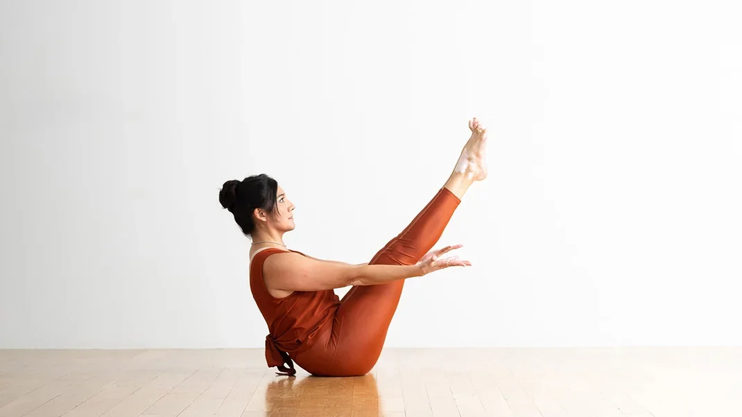 Strength also develops through eccentric contractions, which engage a muscle as it lengthens under load, such as when you lower your head and shoulders slowly back to the floor after Boat Pose.