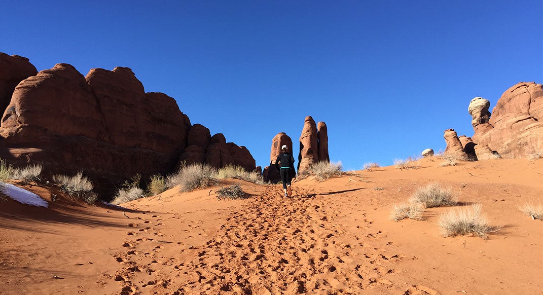 Hill workouts are a great introduction to quality efforts because impact forces are lower on the hard portion, potentially reducing injury risk. Plus, it can help trail runners gain confidence on climbs, while preparing their legs for the eccentric loading of descents. On this workout, run up hard but relaxed, thinking an effort you could sustain for at least 10 minutes in one all-out push.