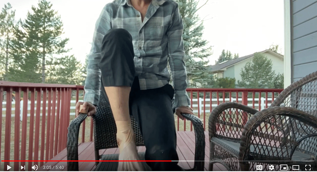 Finish by putting a high sock over the tape to avoid it coming off from rubbing with your shoe. This taping approach should provide full range of motion. Try it on a hike before you run to make sure it works for you. An alternate approach just uses multiple stirrups without the twist, and you can see that here.