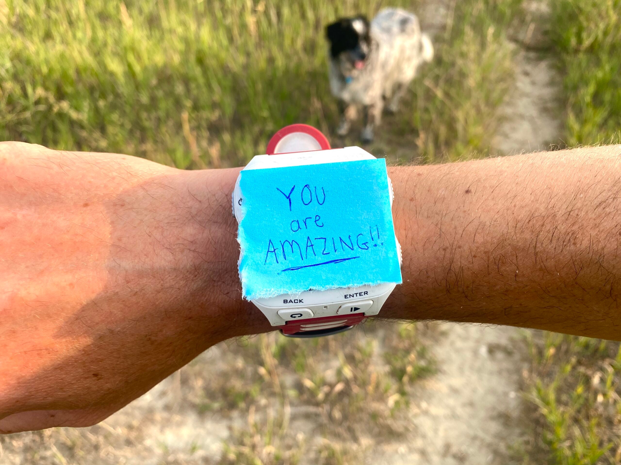 We ask our athletes to turn off the lap function on their watches. You can too. And don’t stop there. Go into “Settings” and take off pace as well. With all those numbers, your smartwatch may just be a dumbass. Have the main data screen show time, make yourself scroll to another data screen to see distance, and you can glance at pace after the fact if you need to.