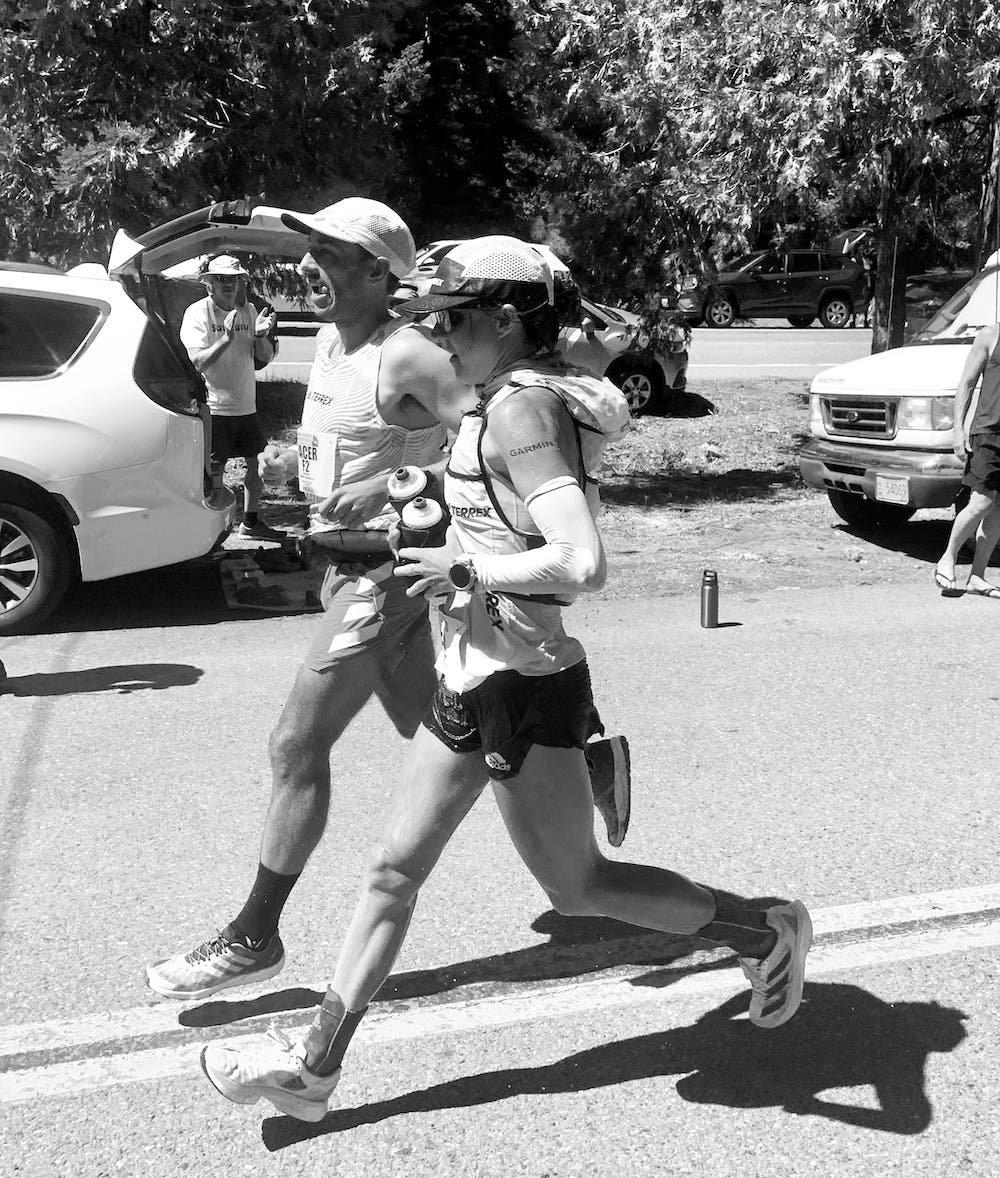 Last year, Tyler Green popularized the use of a hyper-cooled ice vest at aid stations that rapidly lowered core temperature. This year, almost all the athletes I coached at the race were using it, along with covering their skin from direct sun exposure, increasing opportunities to add ice, and aiming to stay wet the entire day.