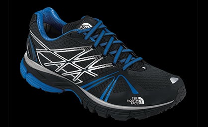 Not many trail-running shoes offer stability posting in the midsole to help combat overpronation, but the forthcoming (fall 2014) Ultra Equity from The North Face does just that, with a stiff medial post that provides significant arch support—similar to what you’d get from an after-market insole. The shoe has a bit of a road-running-shoe feel to it. The super-breathable mesh upper of the non-GTX version dries quickly after creek crossings and is ideal for hot weather (though the shoe’s dark color schemes counteract this coolness to some extent.) Low-profile tread and minimal lateral support in the upper keeps the Ultra Equity light, nimble and best suited for dry, smooth trails, grass or roads.